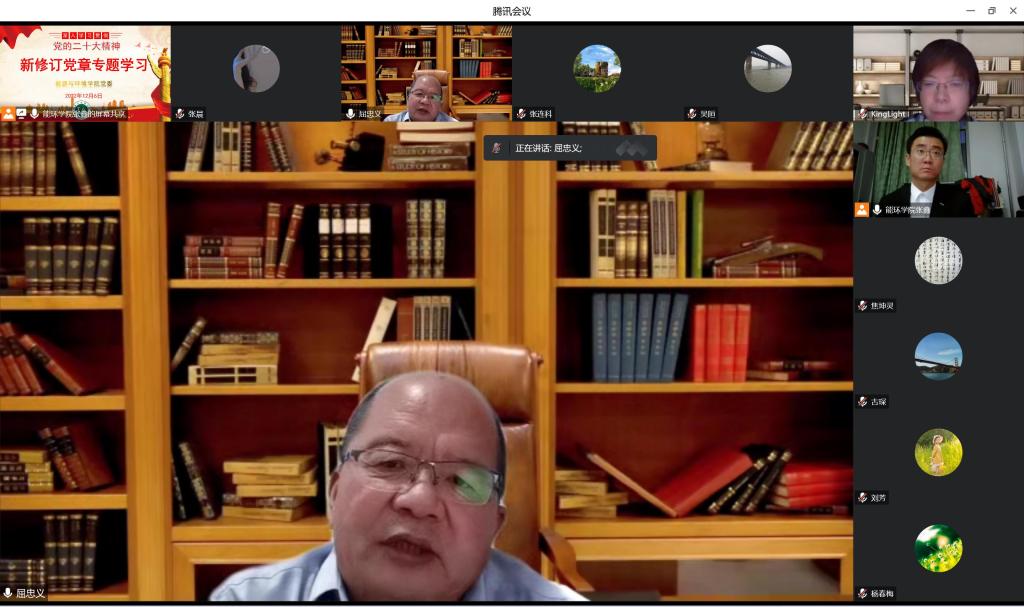 128日下午,能源与环境公司理论中心组集中学习新修订的《中国共产党章程》,公司党委书记张鑫主持,公司党委委员、各党支部书记参会,公司党委委员、副董事长屈忠义旁听指导本次学习活动。本次学习会采取线上腾讯会议形式开展。