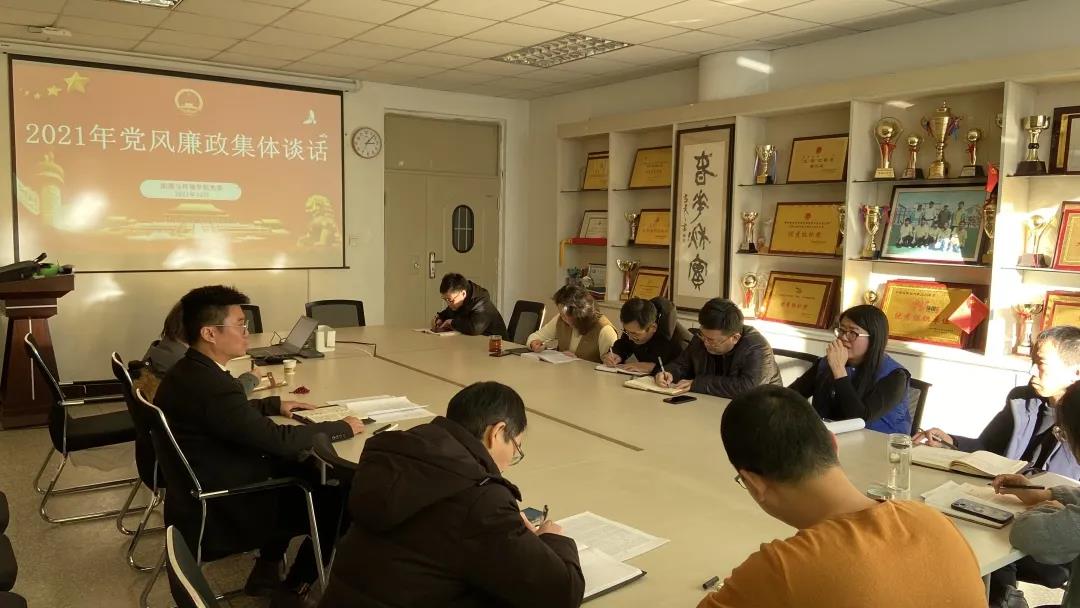 为切实落实党风廉政建设责任制,增强领导干部廉洁自律意识,认真贯彻和落实《中国共产党纪律处分条例》和《廉洁自律准则》的精神,2021年12月29日公司在秋实楼B403会议室开展党风廉政集体谈话。公司党委书记张鑫主持会议,公司领导班子、科级干部、各系、专业负责人参加了廉政谈话会。