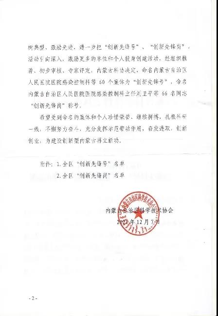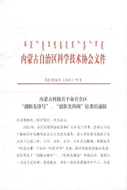 近日,内蒙古自治区科学技术协会网公布了内蒙古科协关于命名全区“创新先锋号”、“创新先锋岗”结果的通报。公司“矿区生态环境评价与修复团队”荣获全区“创新先锋号”荣誉称号。