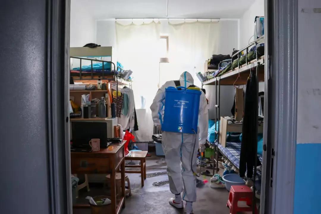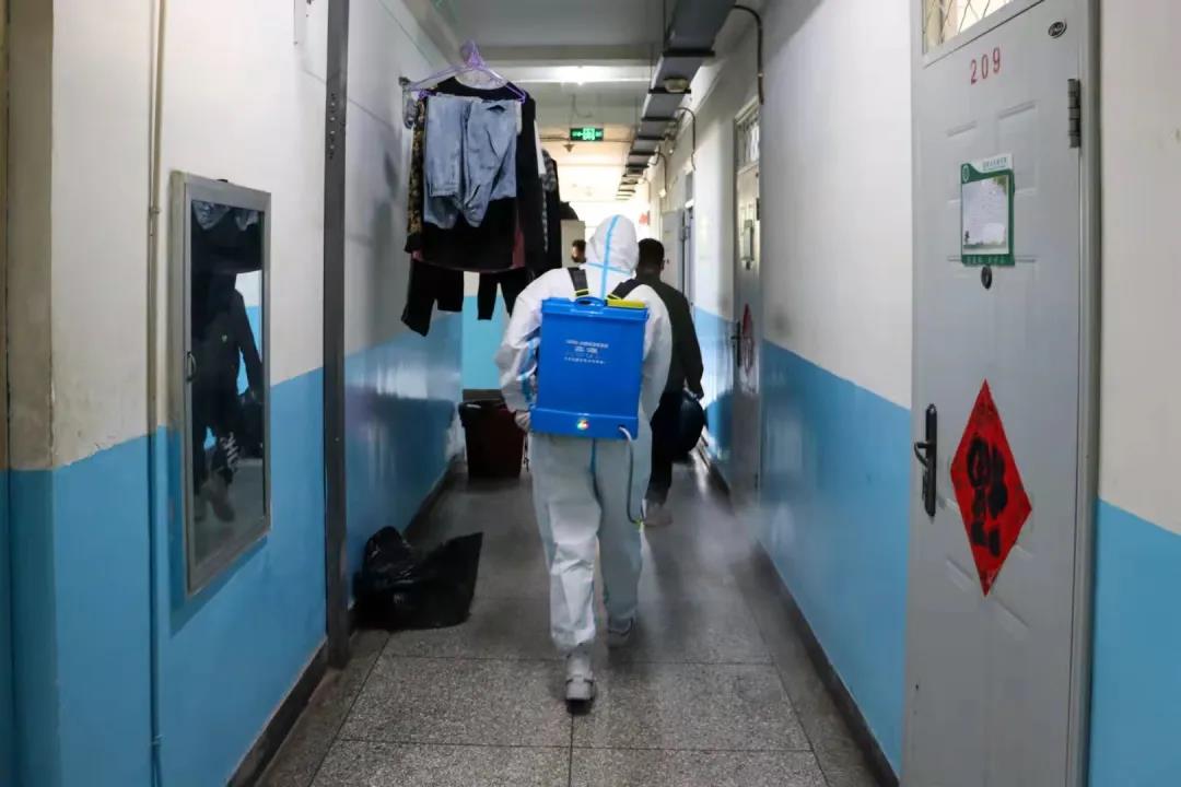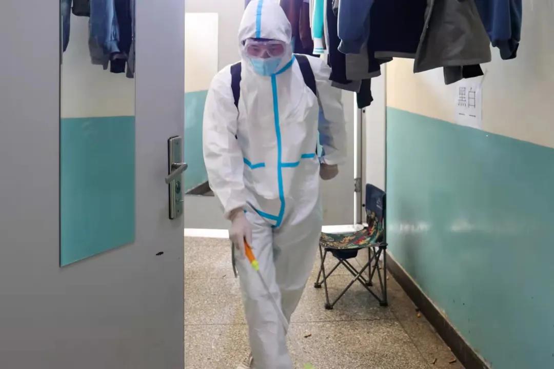 在消杀过程中,员工骨干们“全副武装”,严格按照相关要求,认真配好消毒液,对员工宿舍、阳台、地面及走廊、楼道、门厅等区域进行了全面喷洒消毒,做到不留死角、不留盲区,实实在在为全院员工的安全保驾护航。